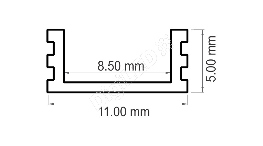 | Aluminum | 11.00 mm x 5 mm | 8mm | 2000 mm | not applicable | 12w | Raw/anodized |