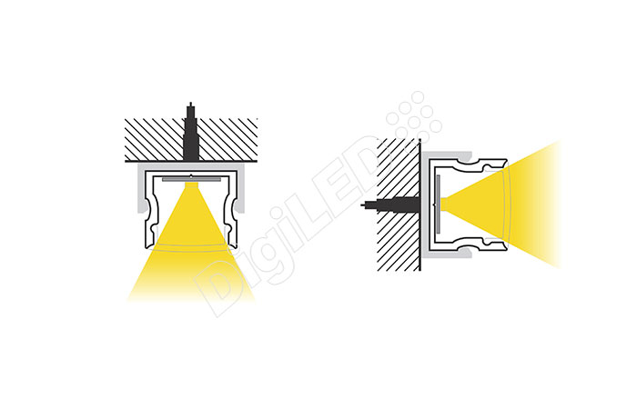 Mainly designed for a “dot less appearance” for surface lighting, Décor is the most perfect LED profile for highlighting applications. This 15 mm deep Aluminium LED Profile, suitable for all types Of LED Strips up to 12mm wide and from low to high wattages. Decor protects the LED strip while also acting as a heat sink to help maintain the LED life. It also gives the LED strip a more professional touch. With a choice of different diffuser covers (frosted, milky or transparent), the appearance of the light can be selected. Mounting clips and end caps available for easy applications of the profile.
