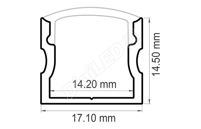 | Aluminum | 17.10 mm x 14.50 mm | 12 mm | 2000 mm | Press fit [optional] | 20w | Raw/anodized or Powder coated |