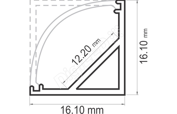 | Aluminum | 16.10mm x 16.10mm | 12mm | 2000 mm | Press fit [optional] | 15w | Raw/anodized |