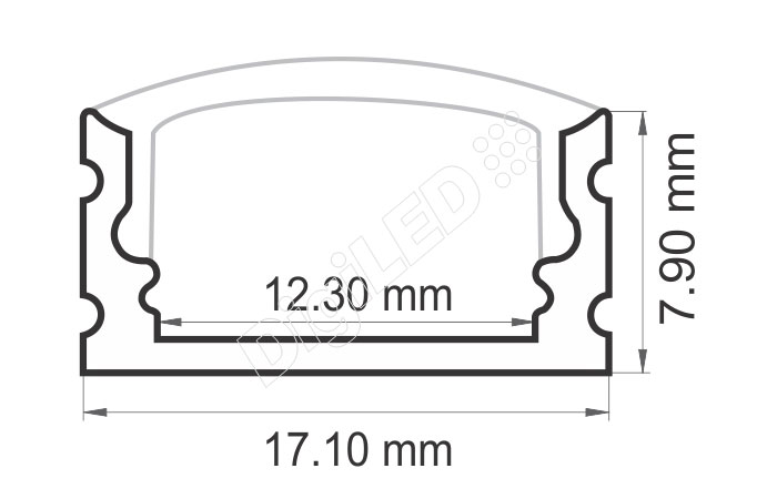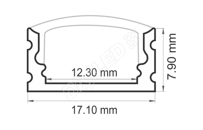 | Aluminum | 17.10 mm x 7.90 mm | 12mm | 2000 mm | press fit [optional] | 20w | Raw/anodized or Powder coated |