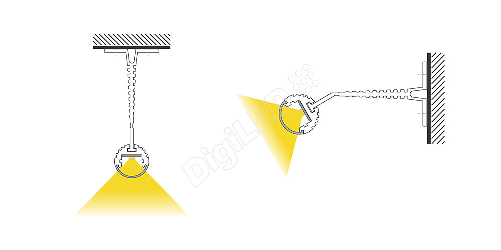 This Round aluminum profile is designed to house LED light strips that have a width of 12mm or less. The Round profile's anodized finish provides maximum protection against the elements, preventing rust and corrosion, and making them perfectly suitable for various direct and indirect linear lighting like Mirror light, desk light, closet light etc. Various types of mounting options are available to make installation easy. The Round profile can also be positioned 360 degrees on the mounting brackets, providing lighting to the exact location needed. 3 types of Diffusers are available to maximize protection of the strip and to control the diffusion of light from the strip. End Caps are available to fully enclose the profile and also gives clean look.