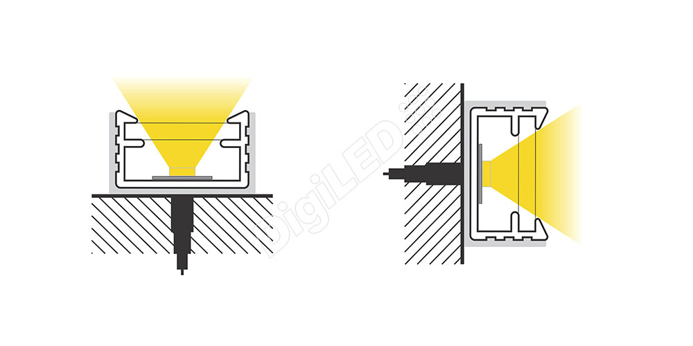 This profile is designed for low cost applications with slid-in diffuser. It can be used with various types of LED strips less than 12 mm wide. This profile is common type of profile for LED linear applications and can be used for multipurpose linear lighting for economy demand. The aluminum profiles gives strength to the lights from being damaged or broken. They also protect from moisture and from unwanted handling of the lights.