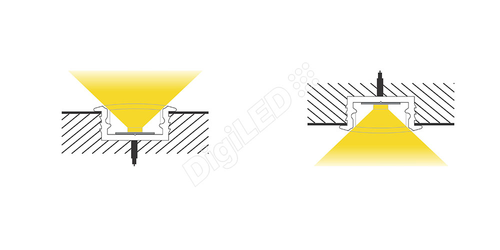 Designed according to modern standards, Nook is our basic multipurpose aluminum recessed LED profile. High bright LED strips can be installed with proper thermally conductive tape or glue. A wider range of accessories are available for mounting and installation requirements. This profile permits the best dissipation of heat and good thermal stability. It is the perfect solution linear illumination. The aluminum profiles protect the lights from being damaged or broken. They also protect from moisture and from unwanted handling of the lights.