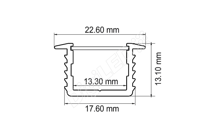 | Aluminum | 22.60 x 13.10 mm | 12mm | 2000 mm | Narrow beam symmetric lens can be installed | 20 watts | Raw / Anodized |