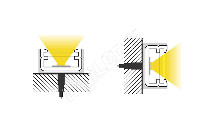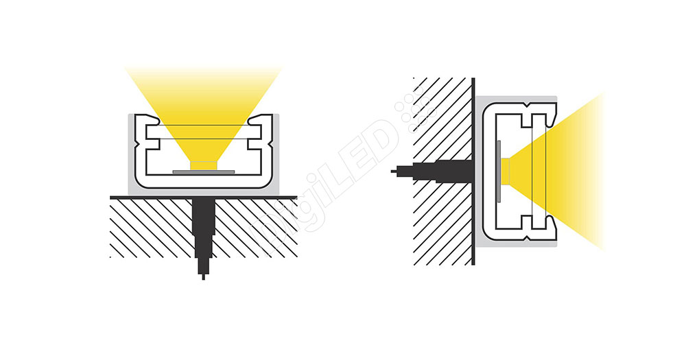 This is a multipurpose LED profile used in low cost and medium wattage applications with FROSTED film diffuser. The diffuser gives very even and soft light. Profile is easy to install by mounting clip or by self-adhesive tape in various general purposes LED lighting applications in day-today use. The profile has good strength and thermal properties for linear lighting demands. It’s one of the hot selling profiles in our assortment.