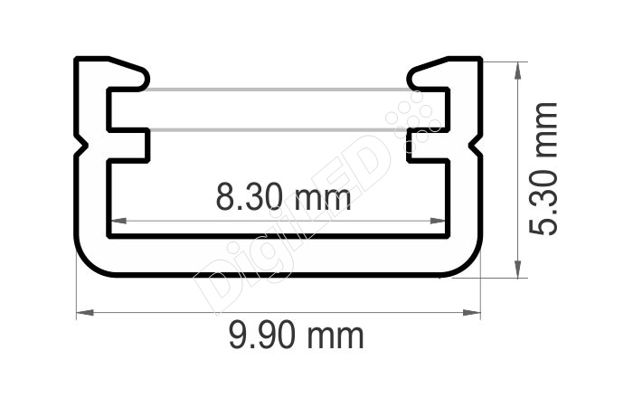 | Aluminum | 9.90 x 5.30mm | 8mm | 2000 mm | film, slide in type | 12w | Raw/anodized |