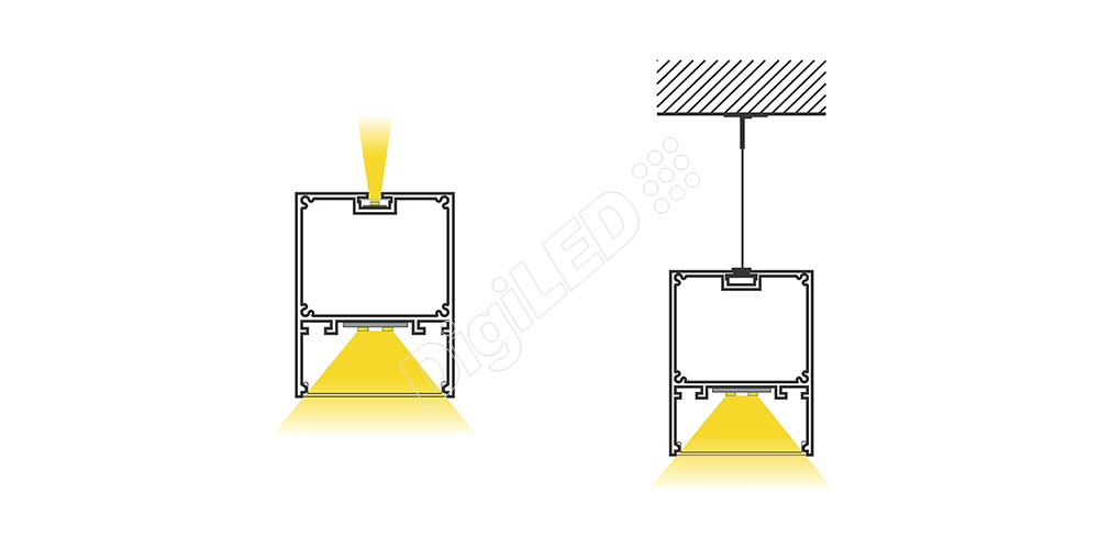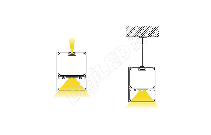 Top5070 profile is designed for high heights and suspended use. The driver can be installed inside the profile and can be accessed easily for maintenance. This profile is design to give down as well as up light with diffusers. LED Profiles protect the LED strip while also acting as a heat sink to help maintain the LED life. For customers who require longer lengths than 1.2m, simply join the aluminum channels to each other to the required length by its special clamps. Installation is designed to be as simple as possible.