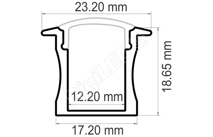 | Aluminum | 17.20 mm x 16.65 mm | 12mm | 2000 mm | Press fit [optional] | 20w | Raw/anodized or Powder coated |