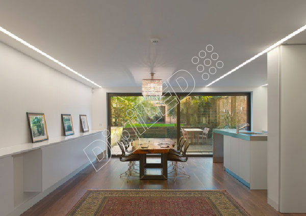 Vessel provides commercial recessed lighting as well as new decorative concept and alternative to traditional panel lighting. This is very elegant and efficient profile by DigiLED, designed for celling and wall recessed applications. Vessel offers excellent heat sink medium for High Power LED strip lights. It can be customized for linear or square or other shapes for office and other commercial areas. Press fit diffuser offers versatile fallibility during maintenance and installation. The aluminum profiles protect the lights from being damaged or broken. They also protect from moisture and from unwanted handling of the lights.