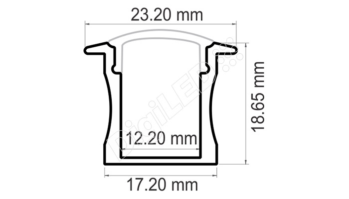 | Profile | Size [W X H] | Led package | CRI | LM/LED | Input Power | Maximum Watt/m | Apx. Weight Kg /m | Coating |